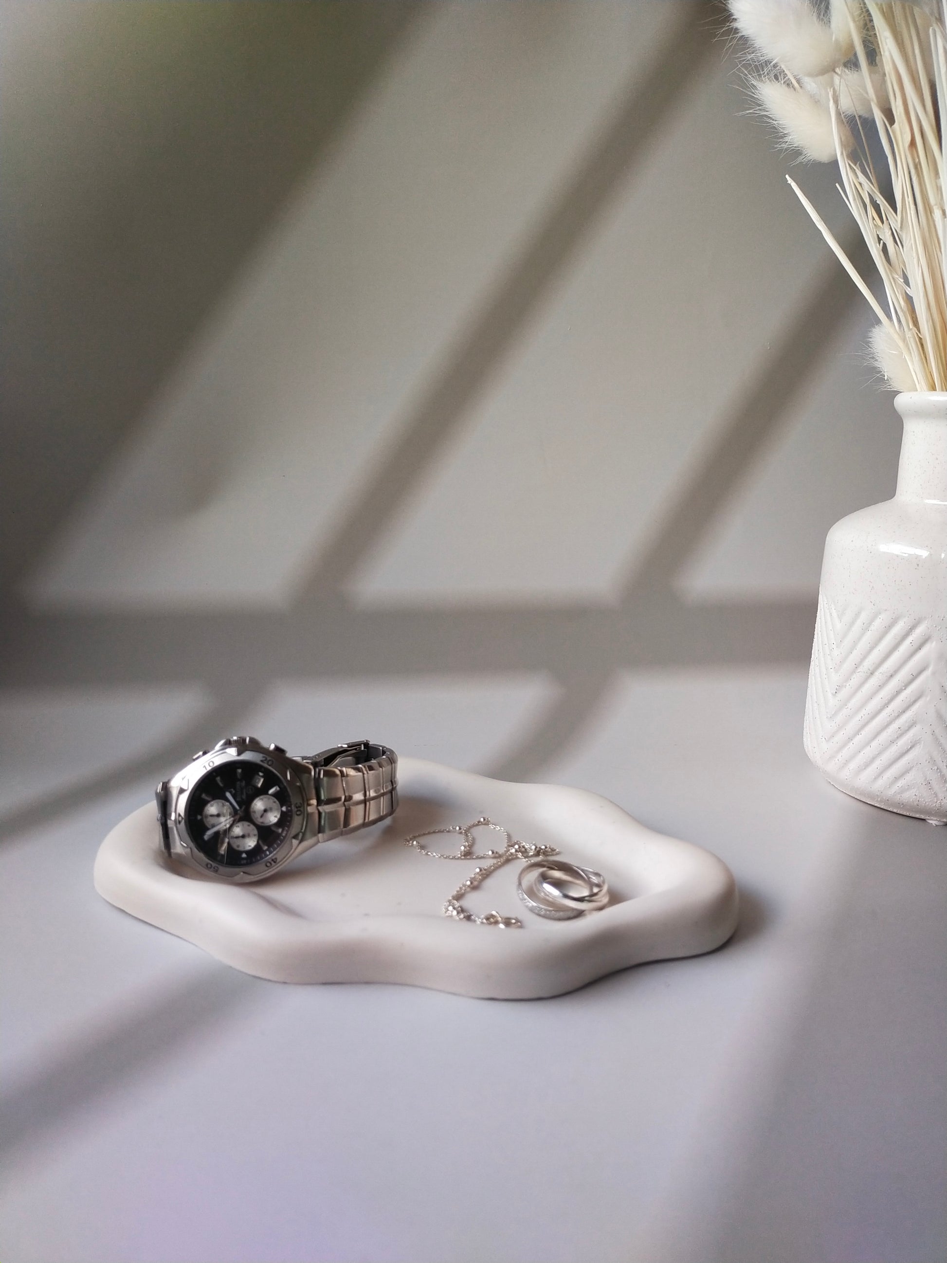 Elevate your space with this organically shaped, minimalist tray, expertly handcrafted from eco-friendly resin. Durable yet refined, its smooth finish and neutral tone make it a versatile addition to any interior style.